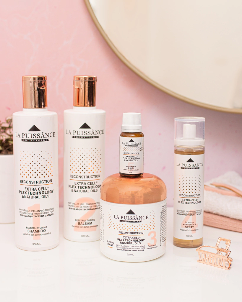 Es una línea compuesta por 6 pasos, la aplicación de todos los productos potencia la efectividad del tratamiento y acelera el resultado de la reconstrucción capilar.